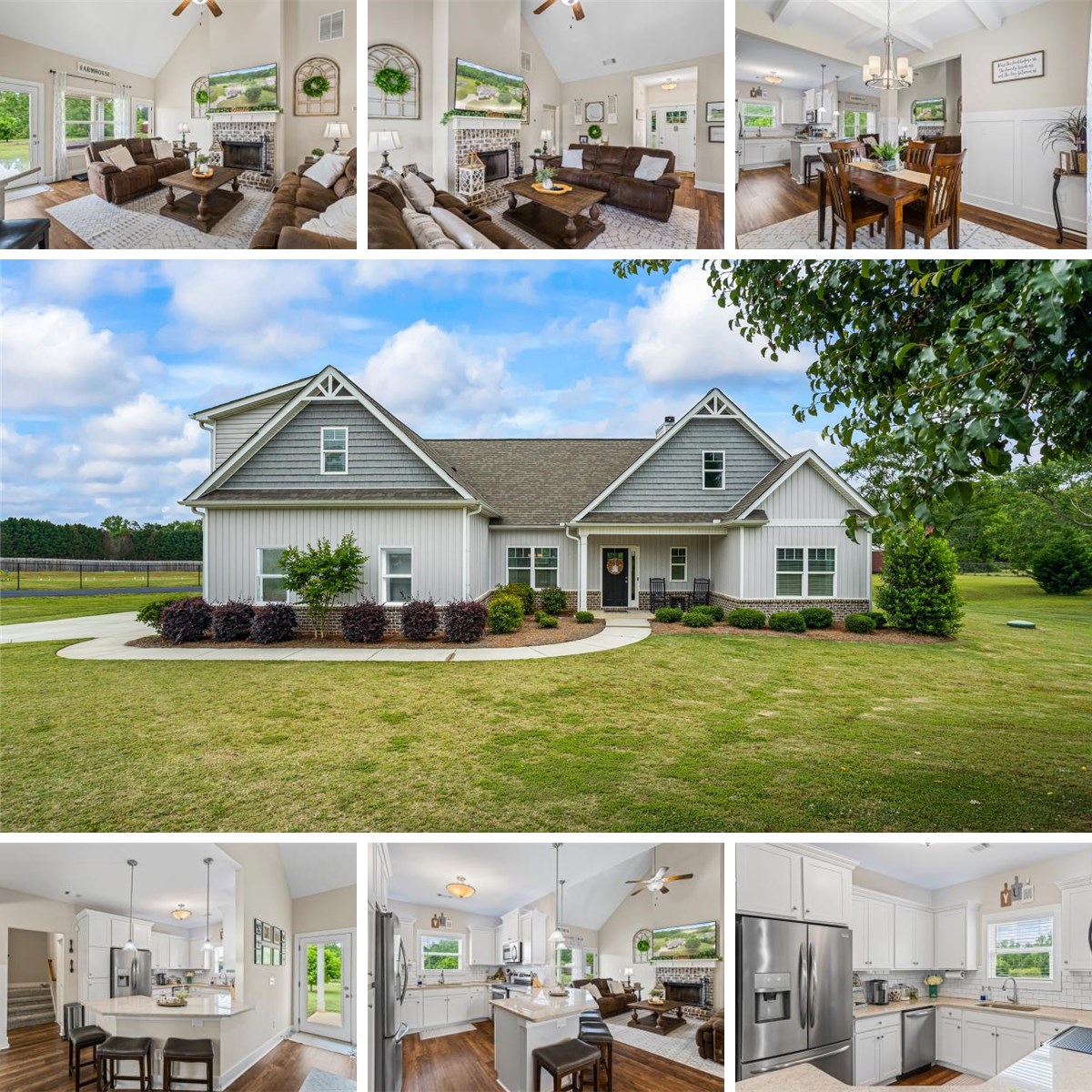10,000 CLOSING COST CREDIT: A total credit of up to $10,000 is available to qualified buyer's to be used toward closing costs when combined with our preferred lender. This credit is offered with an acceptable full-price contract to purchase. Conditions apply; contact the listing agent for details! Beautiful Craftsman-built home featuring an open concept floor plan on a fairly level 2.48 acre lot! Enjoy relaxing on either the front or rear covered porch. The inviting foyer leads to a living area with vaulted ceilings, a custom wood mantle, and a brick hearth for the wood-burning fireplace. This space flows seamlessly into the open dining room, which has a custom ceiling, and the spacious kitchen with a low seating breakfast bar. The entire floor plan is filled with natural light. The home has a split bedroom layout, with the owner’s suite on the main floor complimented by two secondary bedrooms and a full bathroom. A hidden staircase leads to a large fourth bedroom with a full bathroom upstairs, making it a perfect teen suite. The kitchen and bathrooms feature granite countertops, while the kitchen also boasts white cabinets and subway tile. The impressive custom shower in the owner's ensuite comes equipped with a rain head, bench, niche, and frameless glass with door. The main floor has smooth ceilings that reach 9 feet, and the flooring consists of a combination of LVP, LVT, and carpet throughout. There are ample closets in every room, and the side entry garage has direct access to the laundry room, conveniently located near the kitchen. This home is entirely electric and energy-efficient. Security system with cameras and upgraded wireless capable garage door opener remain with the sale. Backyard is perfect for a pool! Located near Rock Springs Church and School, as well as nearby walking trails and parks. Call for a private showing! Recent survey Sept 2025.